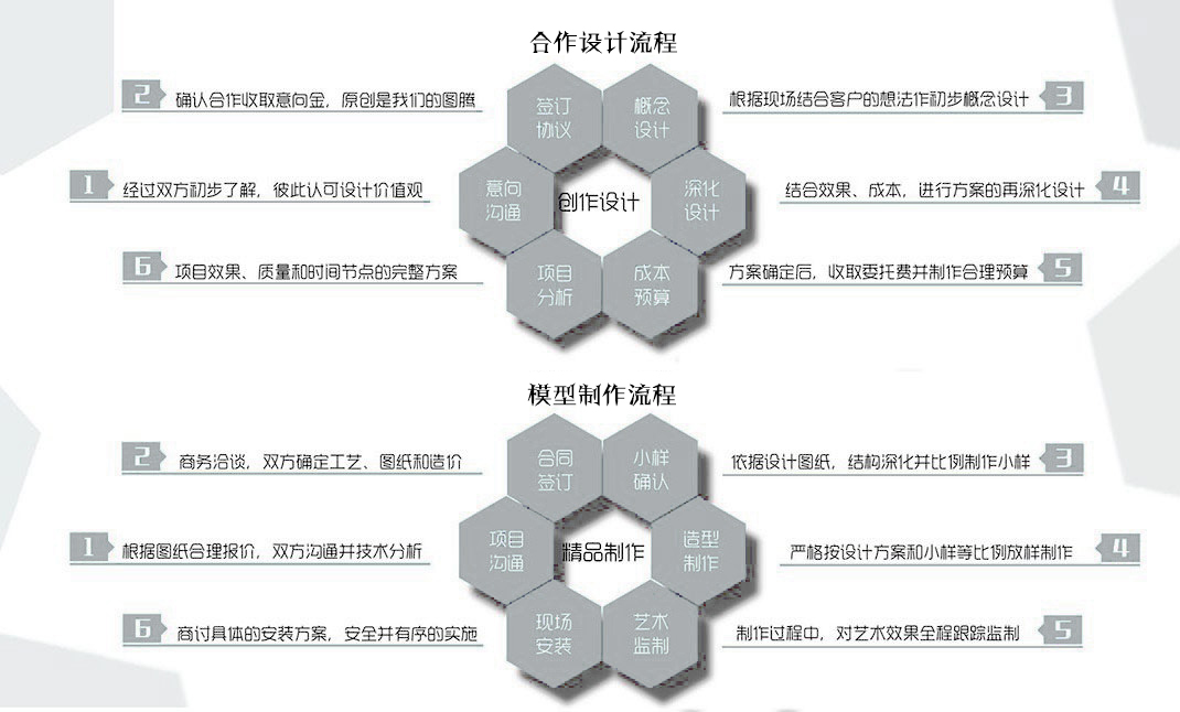 7、審核驗(yàn)收:客戶對創(chuàng)作的模型作品分為設(shè)計(jì)圖、成品、表面效果三步審核驗(yàn)收。